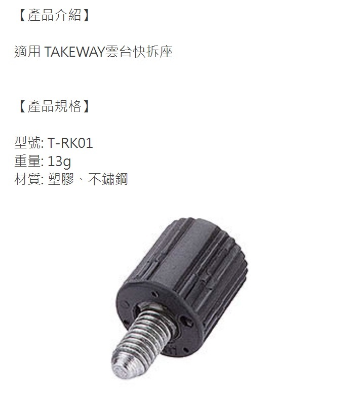 ※此賣場產品內容為T-RK01快拆旋鈕*1。