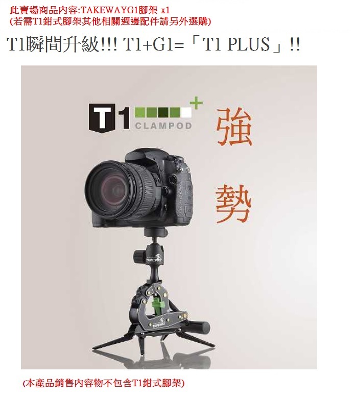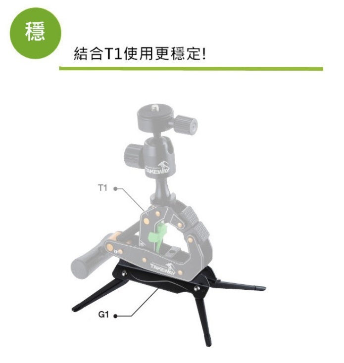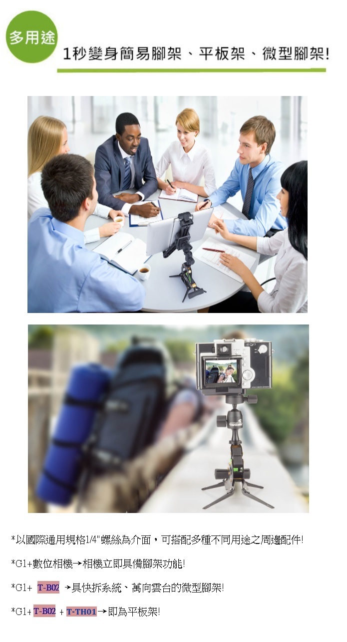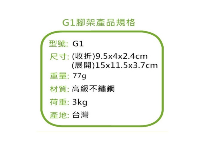 ※此賣場產品內容為G1腳架*1,不包含介紹內容中其相關零配件 ( 請另外選購)。