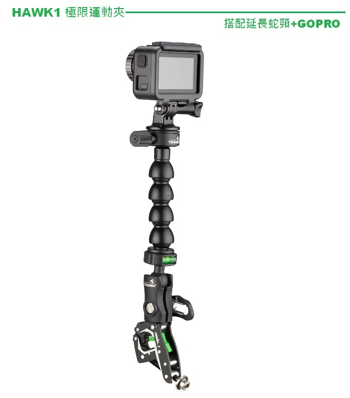 HAWK1極限運動夾,免工具可輕鬆安裝、拆卸,組配設計,擁有多種使用模式,動態錄影機、微單眼、數位相機、手機等,含防盜功能,兼具拆換方便,可安裝固定範圍廣泛,操作簡單不費時,一個人也可以輕鬆創造豐富的拍攝情境,絕對是專業動態拍攝和騎士『唯一最強裝備』。