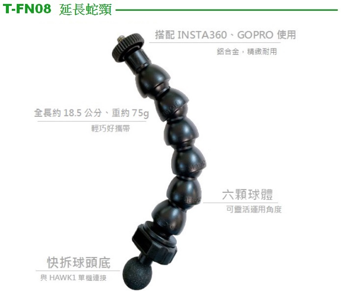 ● TAKEWAY專用蛇頸延長桿 能延長使用距離, 方便調整角度, 操作簡單不受限, 球體則為工業級精密塑膠,無毒耐用緊密度高。