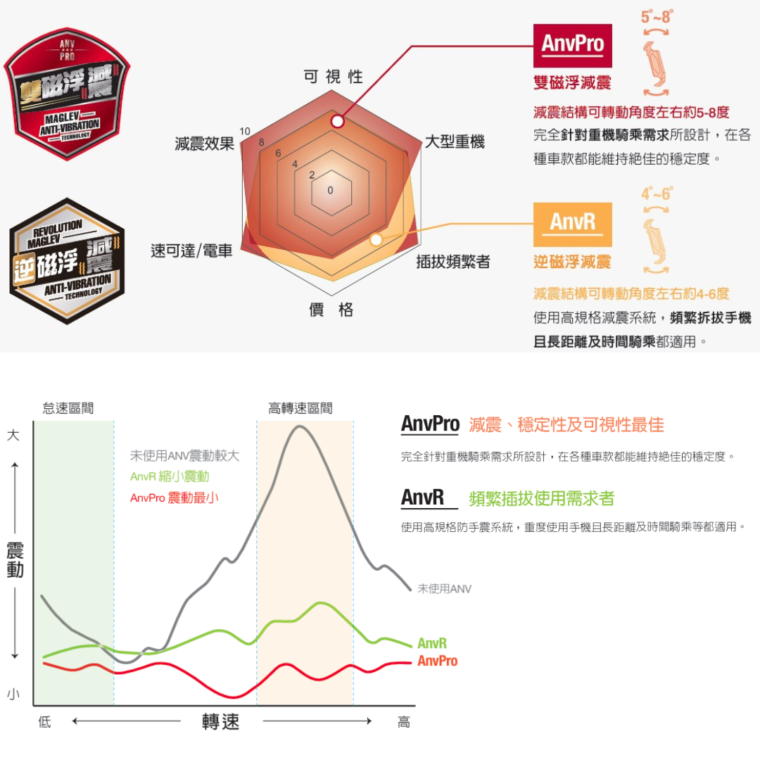 ■ 專為重機騎士設計的專用斜角支架, 符合最佳視角
